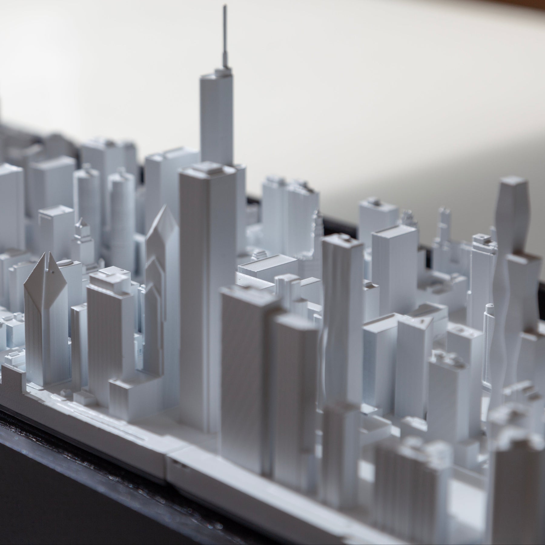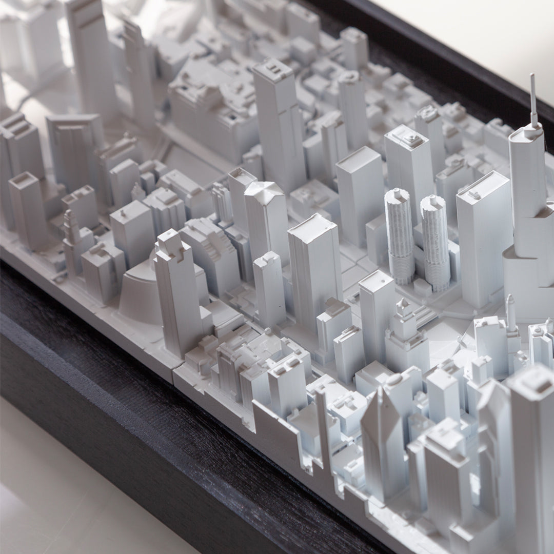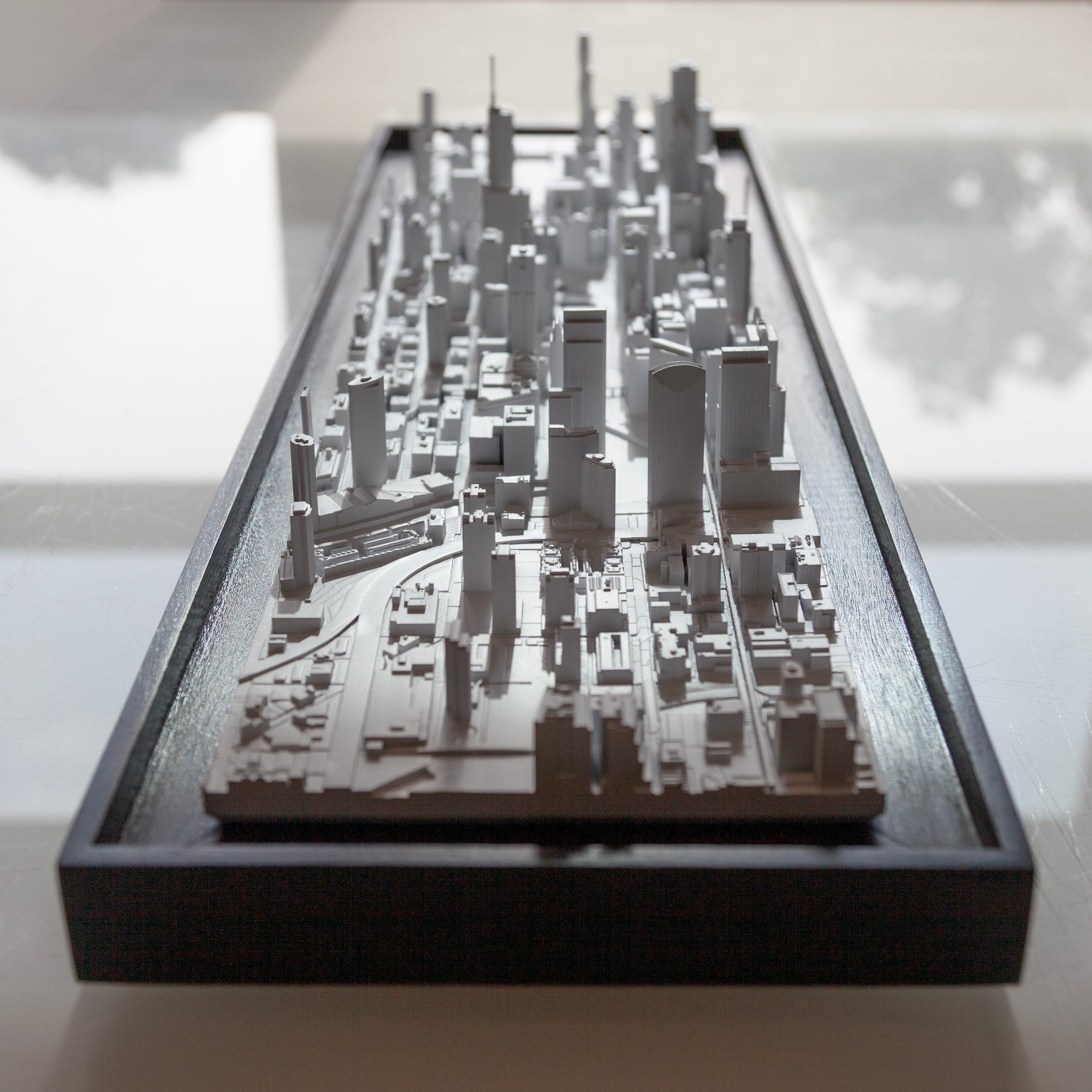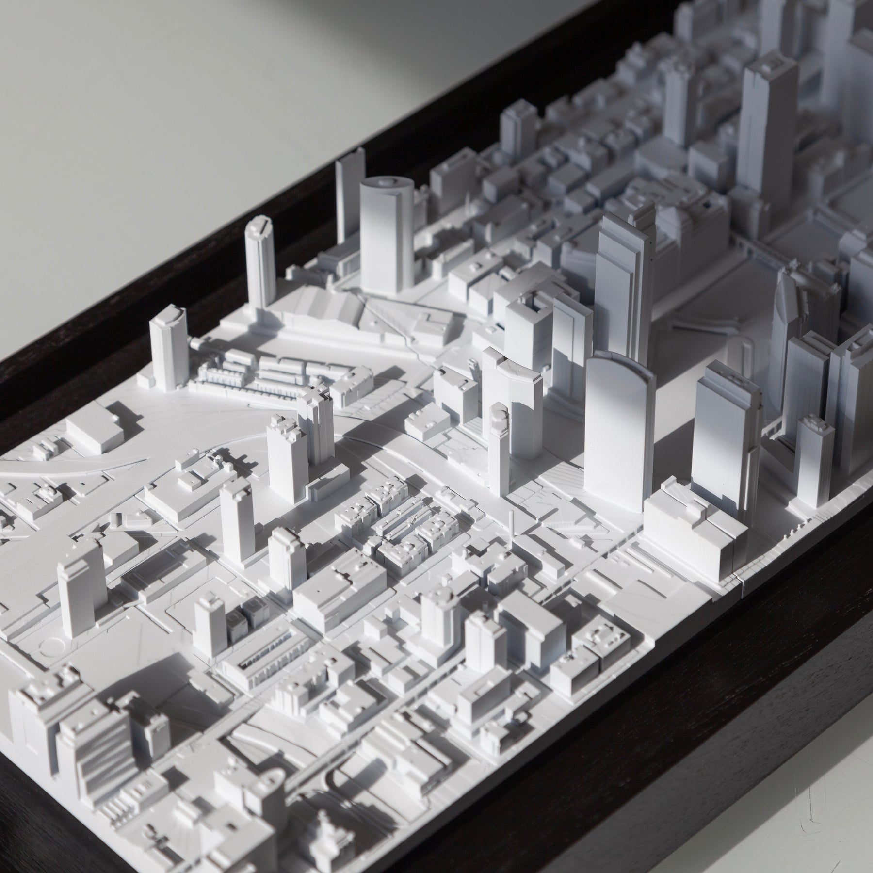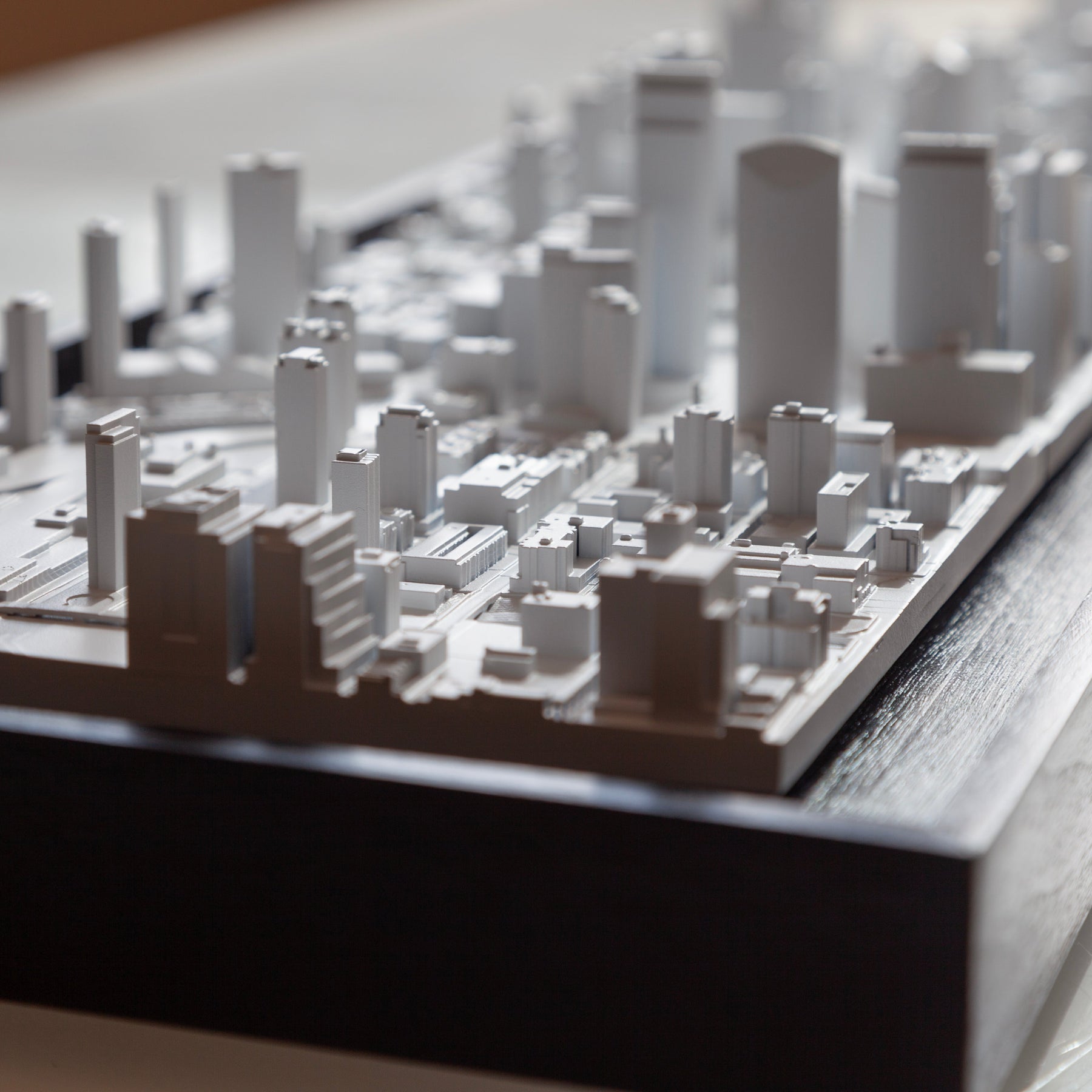 Microscape models are detailed, 1:5000 scale replicas of cities. They're 3D-printed from our own accurate, up-to-date aerial scan data in a durable white thermoplastic that has a hard, almost ceramic feel.
